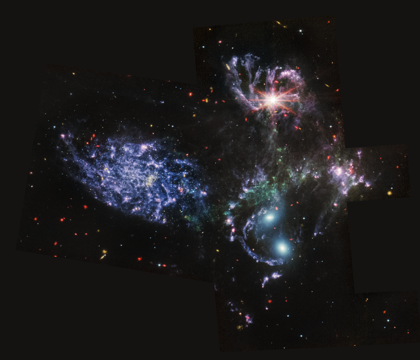 (MIRI) shows never-before-seen details of Stephan’s Quintet, a visual grouping of five